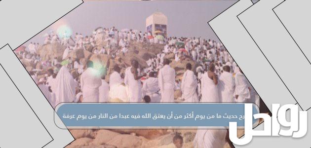 شرح حديث ما من يوم أكثر من أن يعتق الله فيه عبدا من النار من يوم عرفة شرح الحديث ما من يوم يفرج فيه الله عبداً من النار إلا يوم عرفة الذي نقل عن الرسول صلى الله عليه وسلم. ومن بعد موقع رواحل يهتم بالحديث عن صحة هذا الحديث وتفصيله ، وسيكون ذلك في هذا المقال.