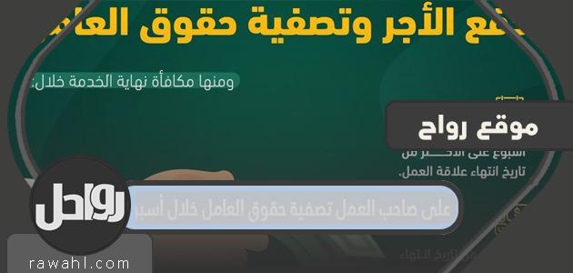 يجب على صاحب العمل تصفية حقوق العامل خلال أسبوع في حالة انتهاء خدمته
