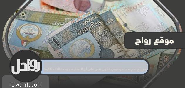 شهد عام 1960 م صدور مرسوم بقانون ينص على أن الدينار هو وحدة العملة الكويتية ، حيث صدر المرسوم الأميري رقم 41 في التاسع عشر من أكتوبر 1960 م بشأن قانون النقد الكويتي ، والذي نص على جعل الدينار هو العملة الكويتية. وحدة جديدة للعملة الكويتية ، تم بموجبه إنشاء مجلس النقد الكويتي ، الذي أوكل إليه عمليات إصدار العملة الكويتية ، وبعد ذلك أصبح الدينار العملة الرسمية في الدولة ، والتي أصبحت من أقوى العملات في العالم ؛ يتمتع الدينار الكويتي بأعلى قيمة للوحدات النقدية مقارنة بالعملات الأخرى..