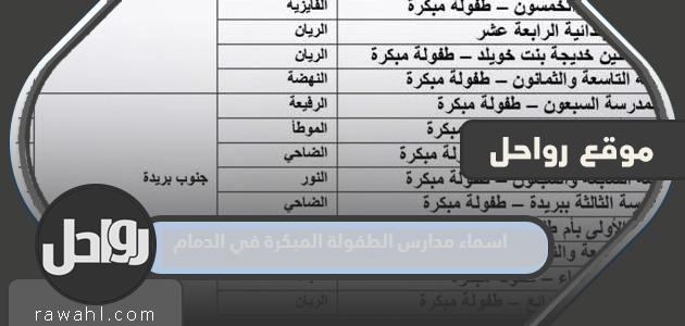 أسماء مدارس الطفولة المبكرة بالدمام 1445